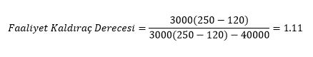 Verilen değerler formüle girildiğinde faaliyet kaldıraç derecesi elde edilir: