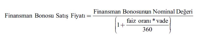 Finansman bonosunun satış fiyatı yukarıdaki formül ile hesaplanır. Buna göre;