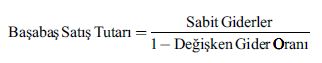 Q = Sabit Giderler / (Birim Satış Fiyatı - Birim Degişken Gider)