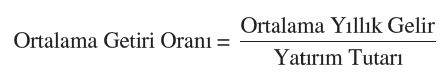 Ortalama Yıllık Gelirin Yatırım Tutarına Oranı= 50.000/250.000= 0,20= %20