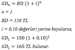 Bir yatırımcı bankaya %10 faiz oranı ile 150 TL yatırmışsa parasının yıl sonundaki değeri aşağıdakilerden hangisi olur?