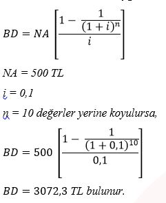 Soruda anüitenin bugünkü değerinin hesaplanması istenmiştir. Bu durumda uygulanacak formül;