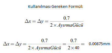 Ayırma gücü 40 mm/çç olan bir fotoğraf veri kaybı olmaksızın sayısal ortama aktarılmak istendiğine göre tarama aralığını hesaplandığında çıkan sonuç aşağıdaki seçeneklerden hangisinde doğru olarak verilmiştir?