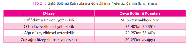 Zekâ Bölümü Katsayılarına Göre Zihinsel Yetersizliğin Sınıflandırılması;