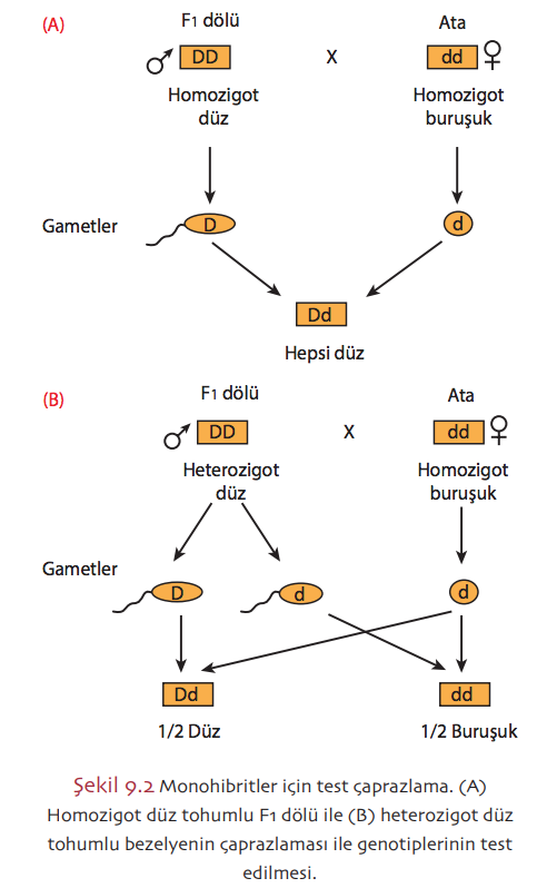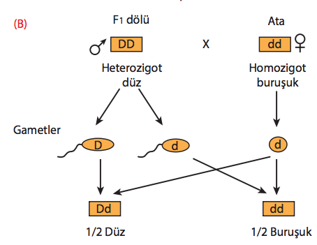 Homozigot düz tohumlu F1 dölü ile genotiplerinin test edilmesi. |