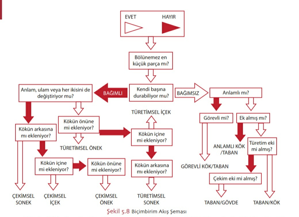 Şekil 5.8'deki Biçimbirim Akış Şemasından yararlanarak sekizinci ve dokuzuncu soruyu yanıtlayın.