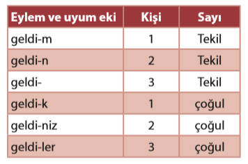 Türkçe gibi bazı dillerin zengin çekim ekleri vardır ve tümcedeki eylem özne ile uyumlu çekim ekleri taşır. Özne ve eylem arasındaki uyum tekillik / çoğulluk gibi sayı ile birinci, ikinci ve üçüncü kişi ekleri şeklindedir. Aşağıdaki tabloda görüldüğü gibi öznedeki kişi ve sayıyı çok iyi ayırt eden uyum ekleri kullanılmaktadır.