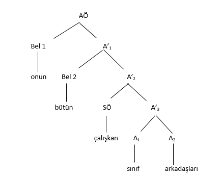 Şekildeki AÖ ağacında A’1, A’2, A’3 şeklinde etiketlenen yansımalar, bir başka deyişle A’ içinde başka A’ bulunabilmesi, insan dillerinin hangi özelliğini yansıtmaktadır?