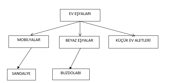 Dır- ilişkisine göre, ‘SANDALYE MOBİLYA-DIR’ anlamı kodlanmıştır. |