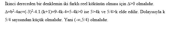 olduğundan denklemin hiçbir gerçel kökü yoktur.