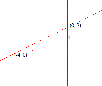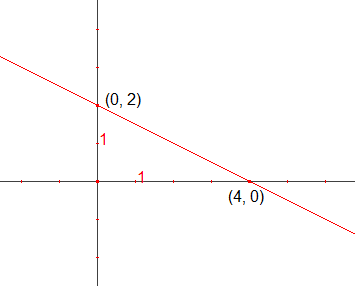x=0 için f(x)=2 ve f(x)=0 için x=4 olarak bulunabilir. Dolayısıyla grafik (4,0) ve (0, 2) noktalarından geçer.