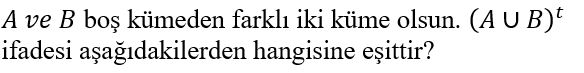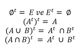 E evrensel küme olmak üzere A ve B kümeleri için