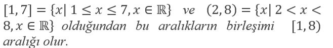 [1, 7] ve (2, 8) aralıklarının birleşim kümesi aşağıdakilerden hangisidir?