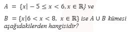 şeklinde tanımlanan A ve B kümelerinin birleşim kümesi aşağıdakilerden hangisidir?