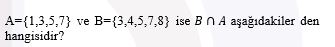 B?A hem B hem de A kümesinde olan ortak elemanlardan oluşur. O halde B?A={3,5,7} olur.