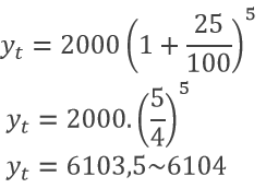 A kasabasındaki nüfus 2000 kişi olarak sayılmıştır. 1 yılda nüfustaki artış % 25 olmuştur. 5 yıl sonra bu kasabadaki nüfus kaç kişi olması beklenir?