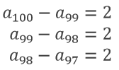 bu üç denklemi taraf tarafa toplarsak a100-a97=6 bulunur. Doğru cevap A'dır.