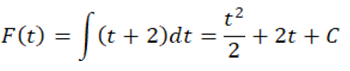 ve F(0)=0 olduğundan F(0)=02/2+2.0+C=0 ise C=0 olarak bulunur. Dolayısıyla F(t)=t2/2+2t olur.