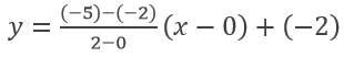 Şekilde verilen doğrunun geçtiği noktalar (x1, y1)=(0, -2) ve (x2, y2)=(2, -5)'dir. Bu değerler doğru denklemine yerleştirilerek