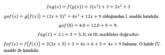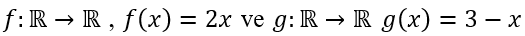 g(f(x)) bulmak için g(x)=3-x fonksiyonunda x yerine f(x)=2x yerleştirilerek g(f(x))=3-2x bulunur.