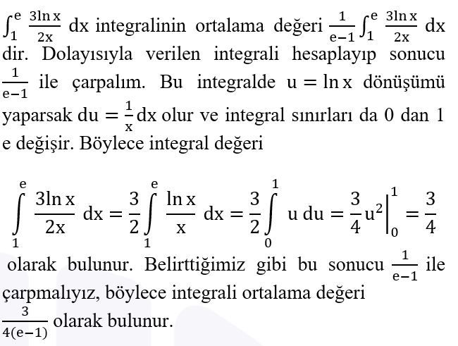 integralinin ortalama değeri aşağıdakilerden hangisidir?