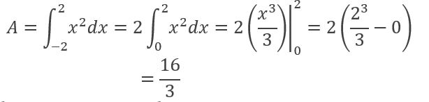 y=4 doğrusu ve f(x)=x2 parabolünün kesiştiği noktalar x2=4 denklemi çözülerek bulunur. Bu denklemin kökleri x=-2 ve x=2 dir. Bu sınırlı bölgenin alanı ise