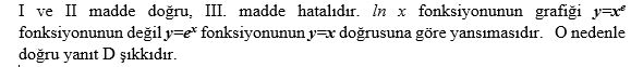 Aşağıda verilen logaritma fonksiyonu ile ilgili bilgilerden hangisi/hangileri doğrudur?