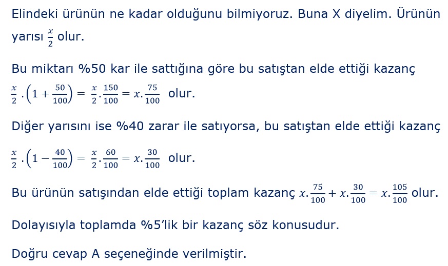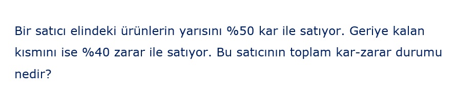 %15 zararla 170 liraya satılan bir mal, %15 kârla kaç liraya satılır?