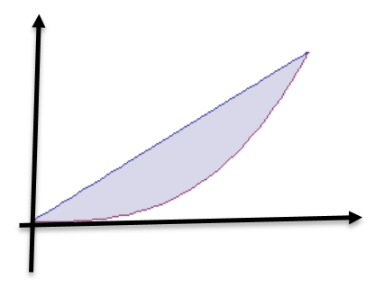 integralini hesaplarsak yani üsteki eğriden alttaki eğriyi çıkartırsak,