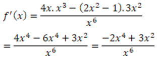 f fonksiyonu iki fonksiyonun bölümü şeklindedir. Bölümün türevini uygularsak;