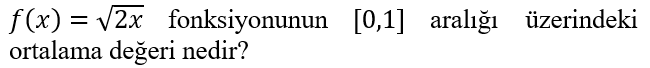 elde edilir. Fonksiyonun türevinin x=1’deki değeri sorulduğundan x görülen yere 1 yazılırsa f'(1)=1 olur.