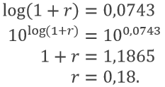 Sonuç olarak bankanın uyguladığı yıllık bileşik faiz oranı r=0,18 yani %18’dir. Doğru cevap D'dir.