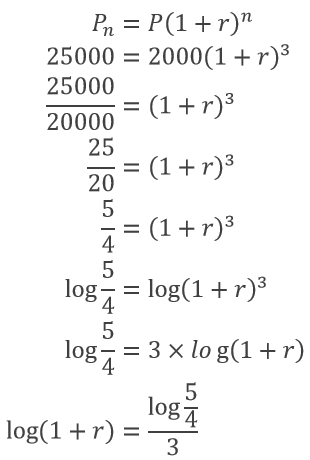 P TL tasarruf bir bankada, dönemlik r bileşik faizle değerlendirildiğinde n dönem sonra tasarrufun ulaşacağı değer Pn ile gösterilmişti ve bu değerin nasıl hesaplanacağı Pn=P(1+r)n formülüyle verilmişti. Bu soru aslında yukarıdaki formülden r’yi bulmamızı isteyen bir sorudur. Burada Pn=25000, P=20000, n=3 olarak verilmiştir. Bu durumda
