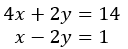 bulunur. x değeri denklemlerden herhangi birinde yerine konulursa 2x+y=7 ise 2.3+y=7 ve buradan da y=1 elde edilir. Bu durumda bu denklem sisteminin çözümü (3,1)’dir. Denklem sisteminin çözümü yok etme yöntemi ile çözülecek olursa çözüm, 2x+y=7 denklemi 2 ile çarpılarak diğer denklem ile taraf tarafa toplanarak da bulunabilir. Bu durumda