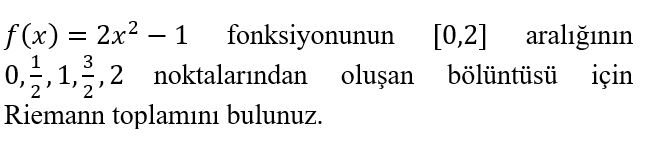 Öncelikle F'(x)=3x2+x verildiğinden F(x) i bulmak için her iki tarafın integrali alınmalıdır.