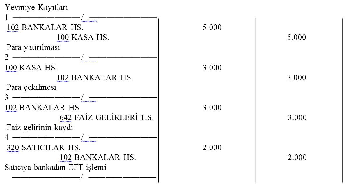 4. Banka hesabından satıcının banka hesabına T2.000 EFT yapılmıştır.