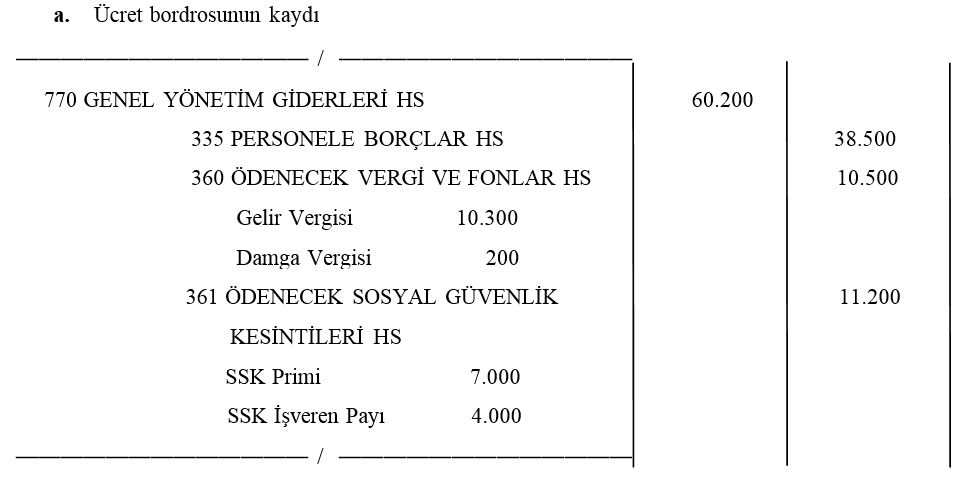 Bu bilgilere göre ücret bordrosunun tahakkuk kaydında "Personele Borçlar Hesabı" kaç t alacaklandırılır?