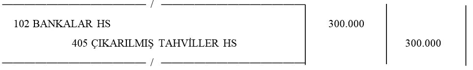 1. D İşletmesinin İhraç ettiği nominal değerler toplamı t300.000 olan 3 yıl vadeli tahvillerinin tamamı satılmış, bedeli işletmenin bankadaki hesabına yatmıştır.