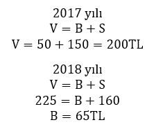 Bir işletmenin 2017 dönem sonu bilançosunda öz kaynakları 150TL, borçları 50TL’dir. 2018 dönem sonu bilançosuna göre varlıkları 25TL artmış, öz kaynakları da 10TL artmıştır. Bu işletmenin 2018 dönem sonu bilançosunda borçların tutarı ne kadardır?
