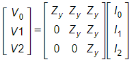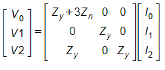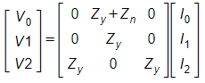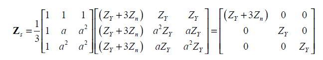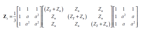 Y bağlı dengeli yük için, Zs sıralı empedans matrisi
