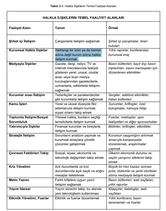 Yıllık raporlar, konferanslar ve kurumsal imaj gibi örnekler halkla ilişkilerin hangi temel faaliyet alanına aittir?