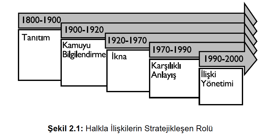 Halkla ilişkiler faaliyetinin amacı örgüt ve paydaşları arasında karşılıklı anlayışın oluşturulması şeklinde evrimleşmiştir |