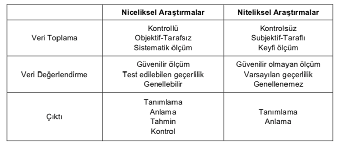 Tablodan da görüldüğü üzere, niceliksel araştırmaların veri değerlendirme aşamasında genellenebilir.