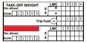 Denge formu üzerinde bir uçağa ait iniş ağırlığı değerinin yakıt miktarına göre belirlenen yaktı indeksi çizgisi ile çakıştırılması sonucu elde edilen nokta LM (Landing Mass) ağırlığıdır.
