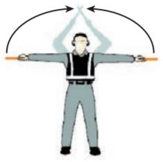 Bir işaretçi (yol gösterici) şahıs önce kollarını iki yana açıp, daha sonra kollarını başının üstüne getirip elindeki flamayı çarpı şeklinde birleştiriyorsa bu marshalling işareti ne anlama gelmektedir?