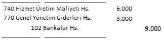 740 Hizmet Üretim Maliyeti hesabı 3.000 ₺ borçlandırılır. |