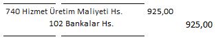 740 Hizmet Üretim Maliyeti hesabı 925 ₺ borçlandırılır. |