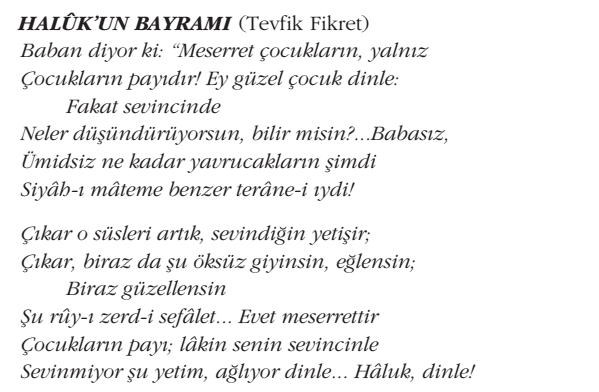 Yukarıda bir bölümünü okuduğunuz Halûk'un Bayramı isimli şiirinde Tevfik Fikret, hangi konudan bahsetmektedir?