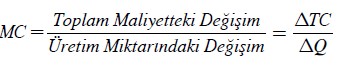 Marjinal maliyet aşağıdaki formül ile hesaplanır:
