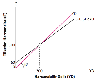 Grafikteki tüketim fonksiyonuna göre harcanabilir gelirin sıfır olduğu durumda tüketim harcamalarının 60 birim olduğu görülmektedir. Bu tüketim harcaması otonom tüketimi göstermektedir.